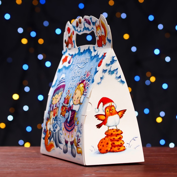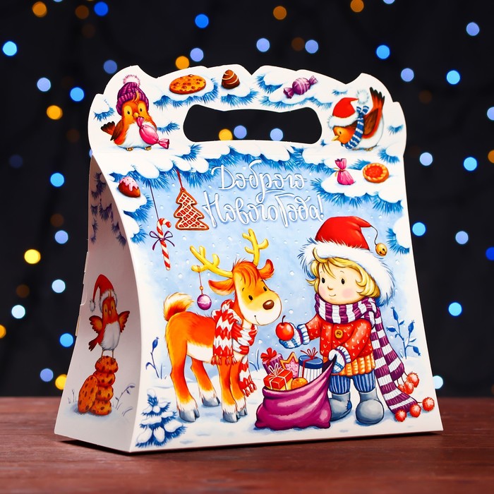 Подарочная новогодняя коробка предназначена для использования на утренниках и для подарков под ёлку для детей. Эта коробка создана специально для того, чтобы сделать праздник еще более ярким и запоминающимся.