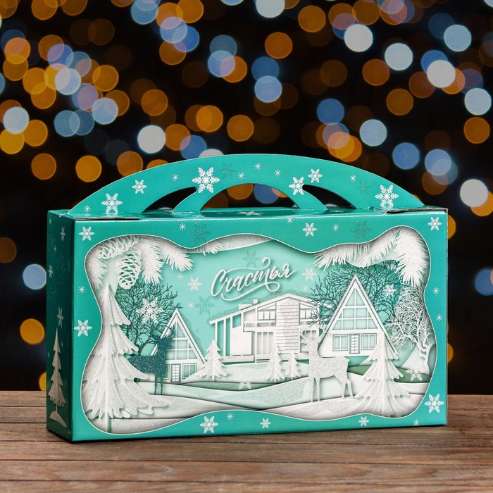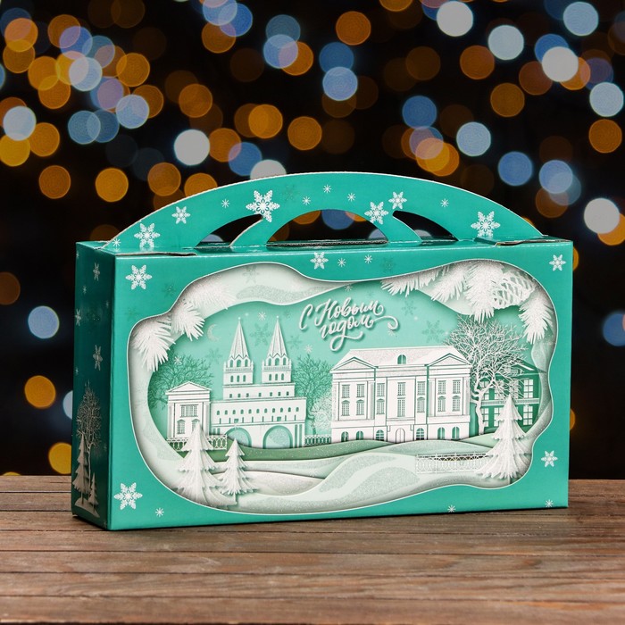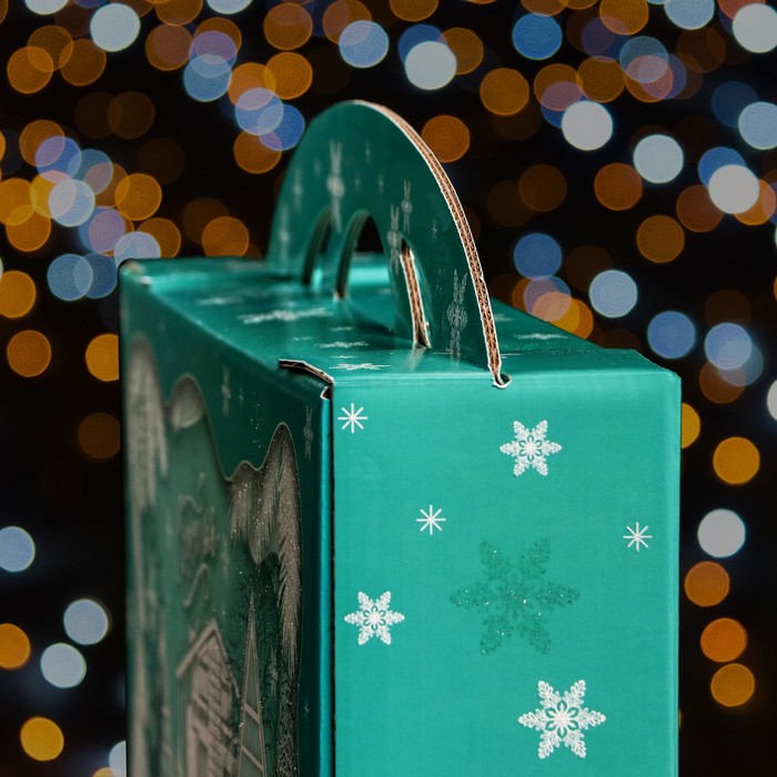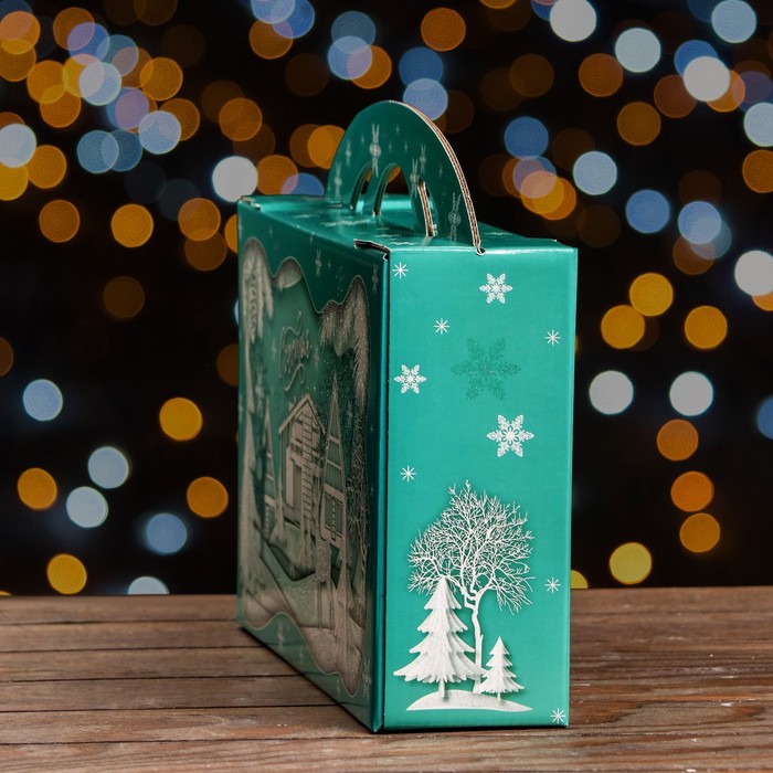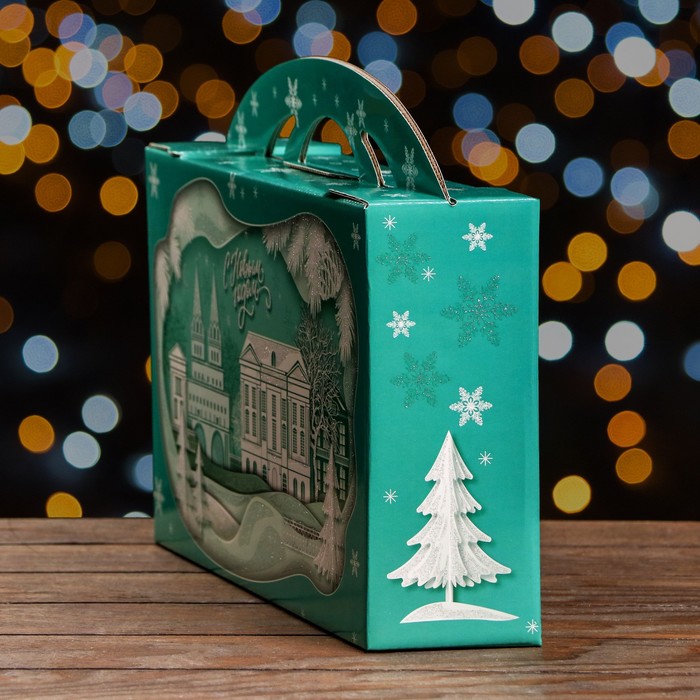 Подарочная новогодняя коробка «Заснеженный город» , Портфель макси широкий, 37×8×20.2 см — Характеристики