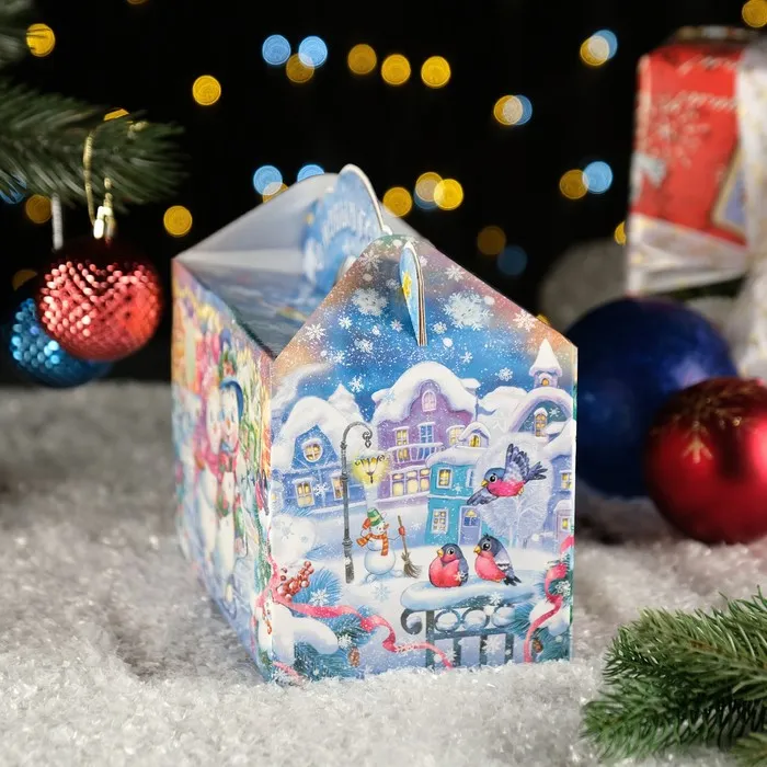 Коробка выполнена из качественных материалов, которые обеспечивают сохранность содержимого. Она имеет яркий и красочный дизайн, который отражает атмосферу Нового года.