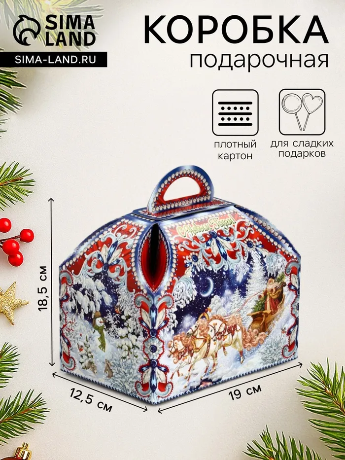 Подарочная новогодняя коробка «ЗИМНЯЯ ТРОЙКА в синем» Ларец малый, 18.5×12.5×19 см — Характеристики