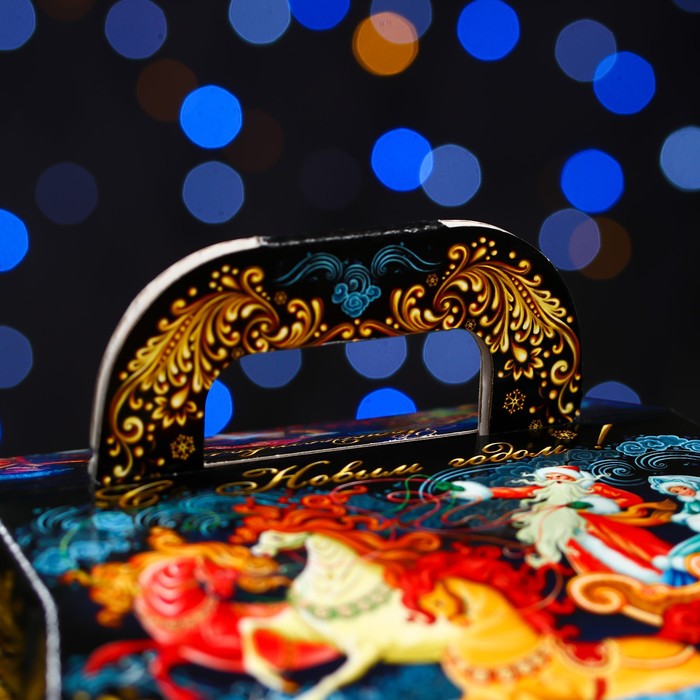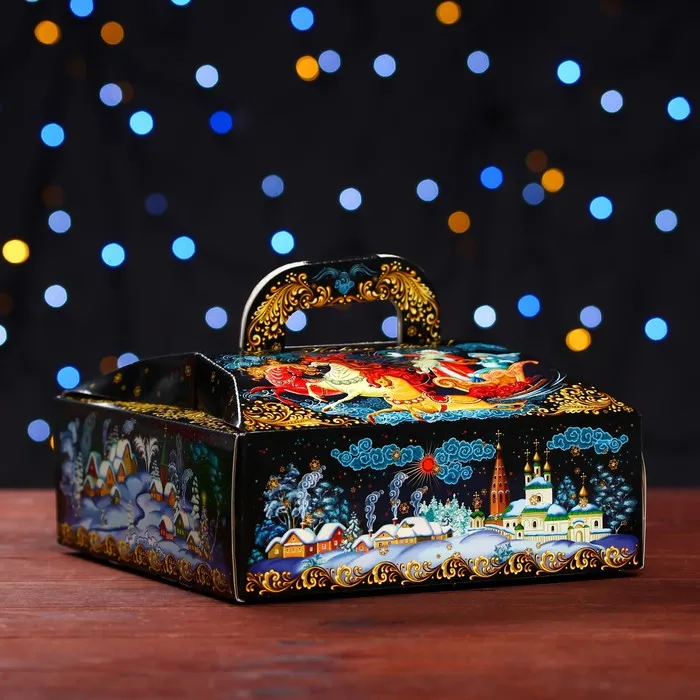 - Изящное оформление: Коробка выполнена в форме шкатулки с ярким новогодним рисунком, покрытым УФ-лаком, что придаёт ей особое сияние и защищает от повреждений. Эта упаковка станет неотъемлемой частью любого праздничного декора.