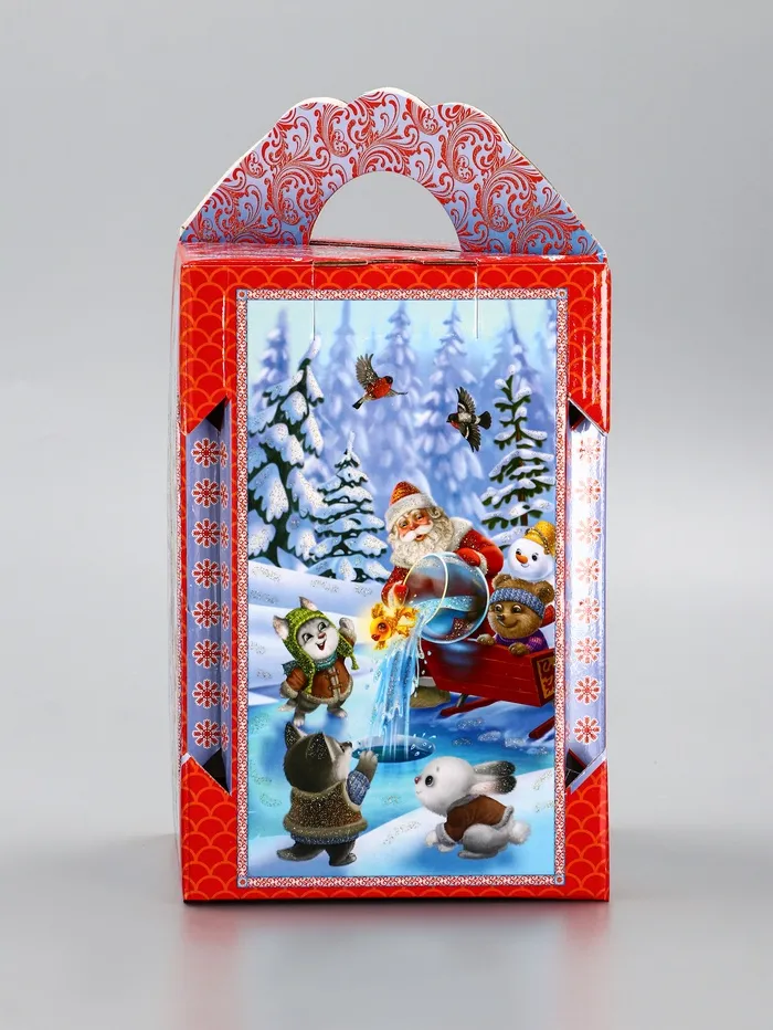 - Универсальность применения: Отсутствие привязки к символу года позволяет использовать упаковку несколько сезонов. Дизайн нравится детям и тем, кто верит в праздничную магию.