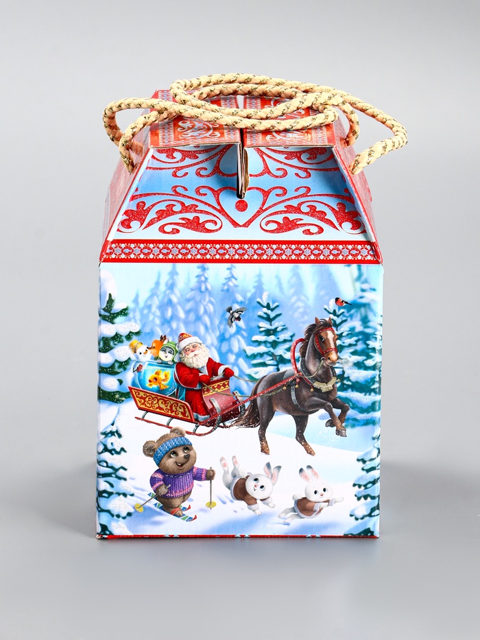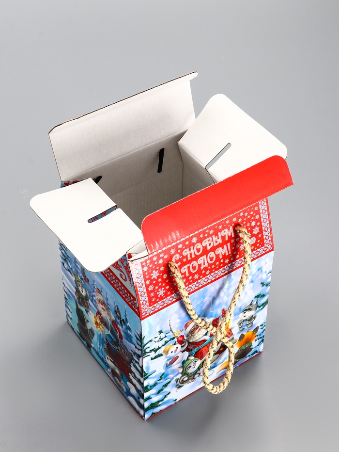 • Универсальный дизайн: Классическое сочетание голубого, красного и золотого цветов без символа года позволяет использовать коробку несколько сезонов. Новогодняя тематика без конкретных дат делает упаковку актуальной долгое время.