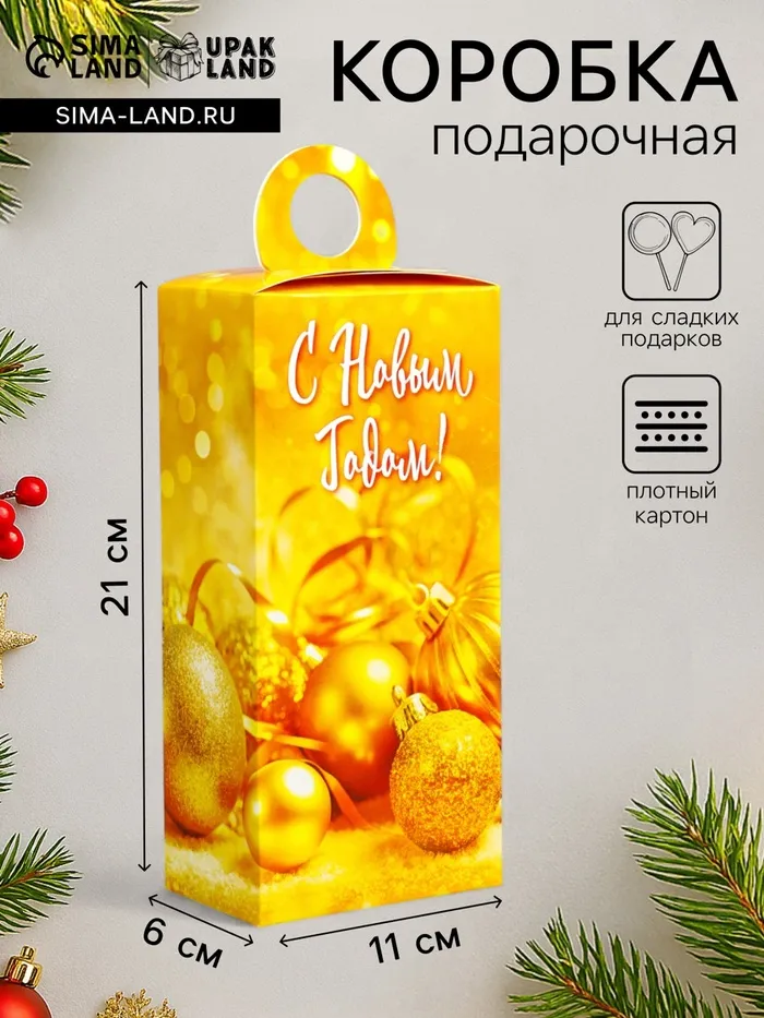 Подарочная новогодняя коробка «Золотой» , сюрприз 11×6×21 см — Характеристики
