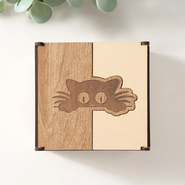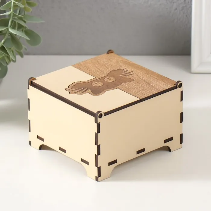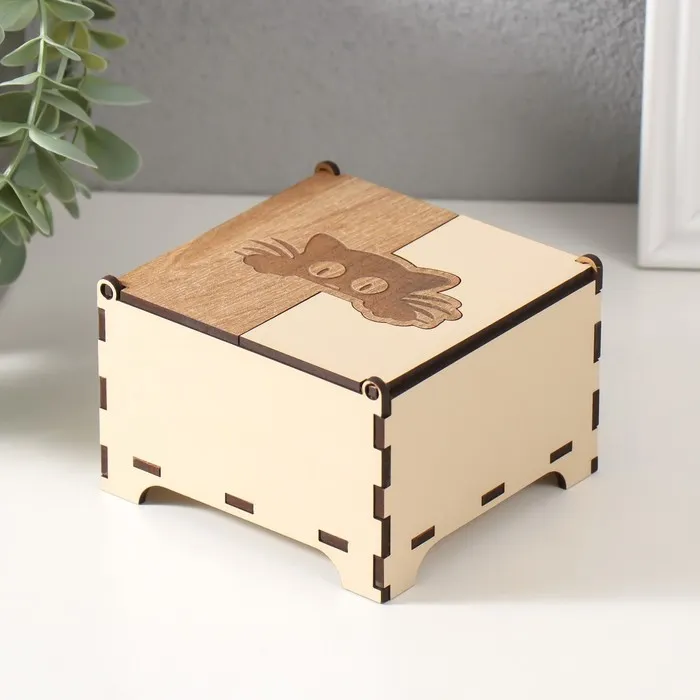 Подарочная шкатулка из дерева «Котенок», комбинированная, основа для творчества, украшений, 10.5×10х7 см — Характеристики