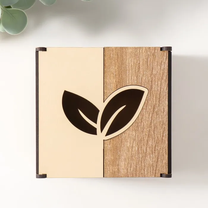 Подарочная шкатулка из дерева «Листочки», комбинированная, основа для творчества, украшений, 10.5×10х7 см — Характеристики