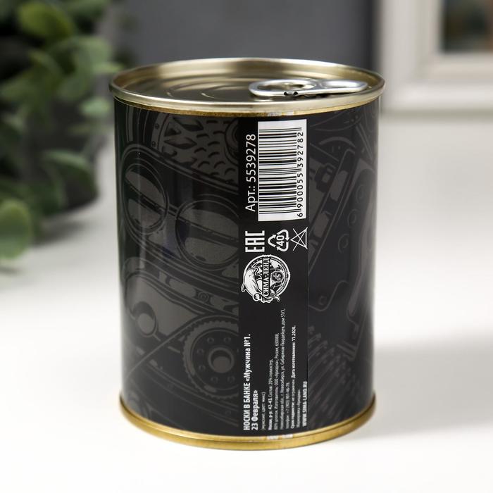 Подарочные носки в банке «Мужчина №1. 23 февраля», (внутри носки мужские, цвет чёрный) — Характеристики