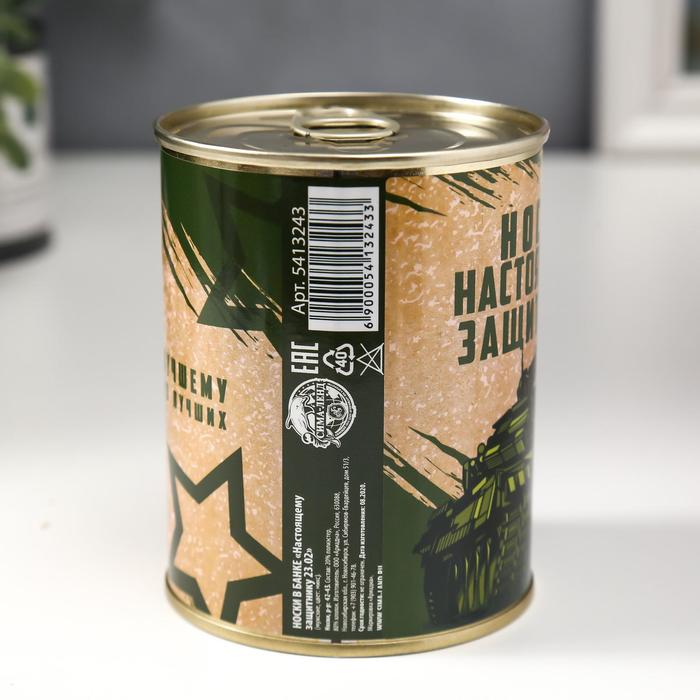 Подарочные носки в банке «Настоящему защитнику 23.02», (внутри носки мужские, цвет чёрный) — Характеристики