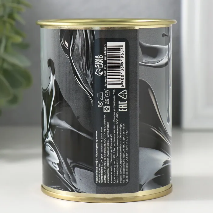 Подарочные носки в банке «Нефть. Настоящему мужчине», (внутри носки мужские, цвет чёрный) — Характеристики