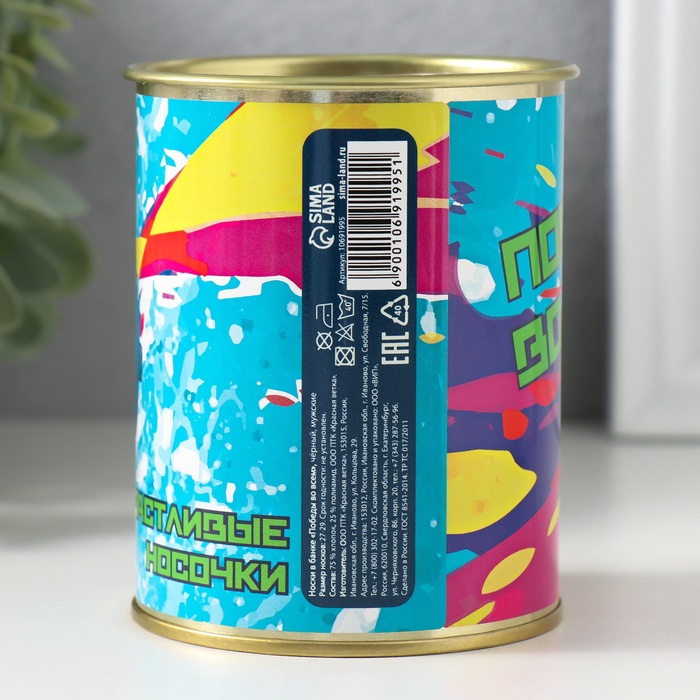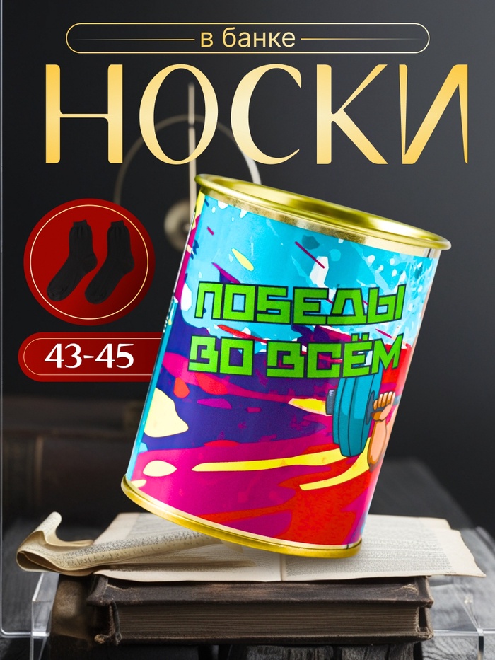 Подарочные носки в банке «Победы во всем», (внутри носки мужские, цвет чёрный) — Характеристики