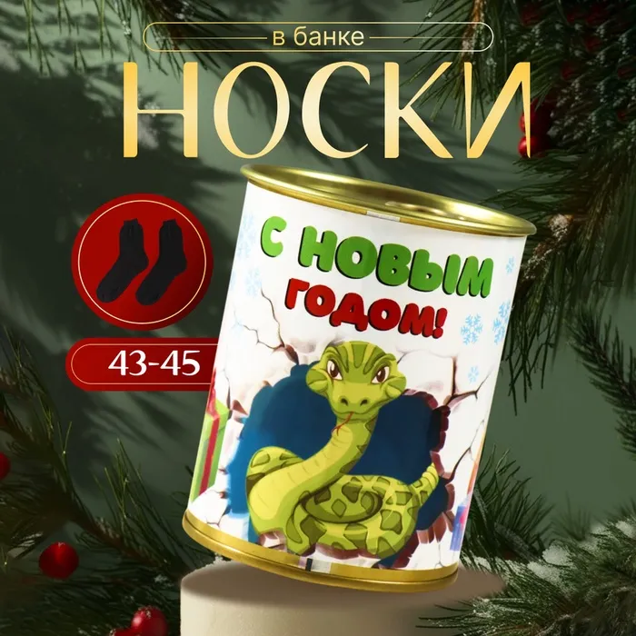 Подарочные носки в банке «С Новым годом», (внутри носки мужские, чёрные) — Характеристики