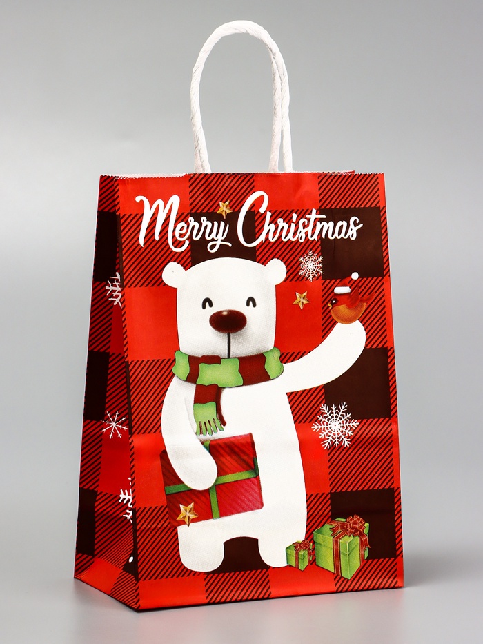 Подарочные пакеты новогодние крафт «Рождество», 15×21×8 см, Набор 5 шт. — Характеристики
