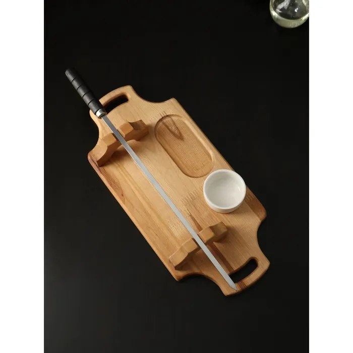 Подарочный деервянный набор для подачи шашлыка Adelica, доска - тарелка 40×18×5.5 см, шампур 1 шт., опахало, соусник, берёза — Характеристики