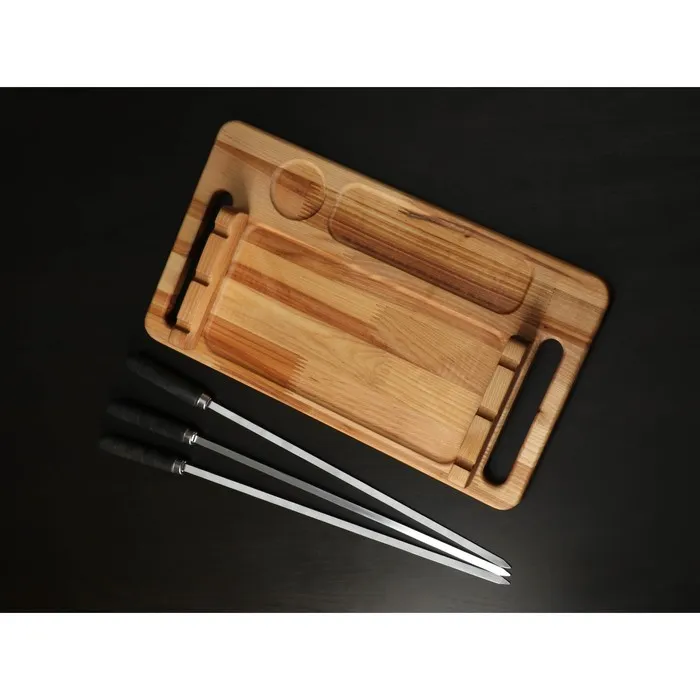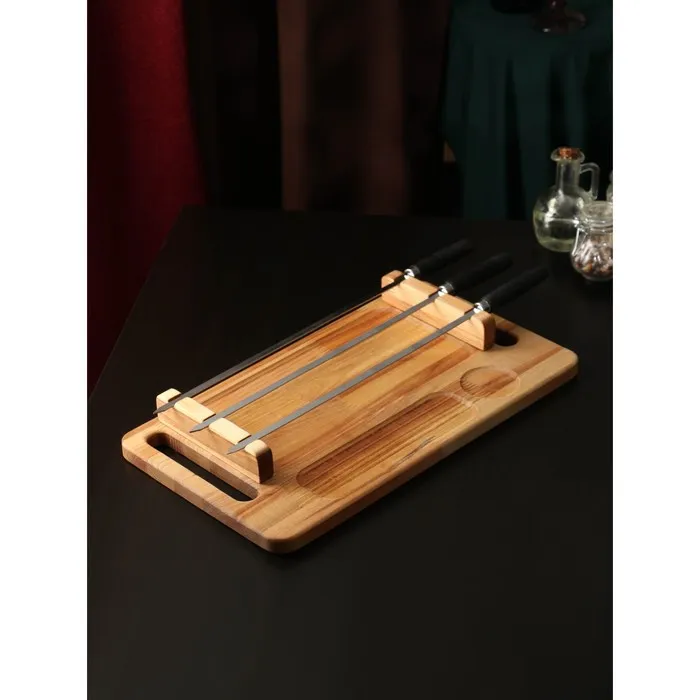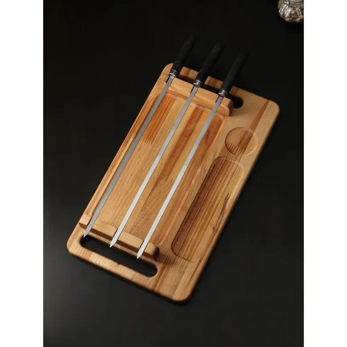 Подарочный деревянный набор для подачи шашлыка Adelica, доска-тарелка 44×24×5.5 см, шампур 3 шт., опахало, берёза — Характеристики