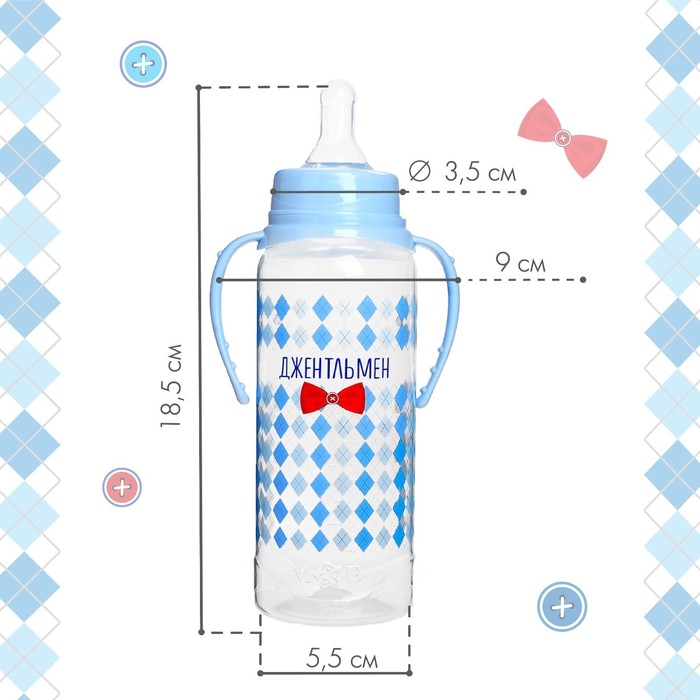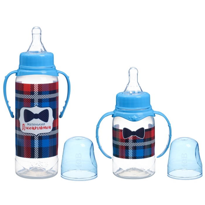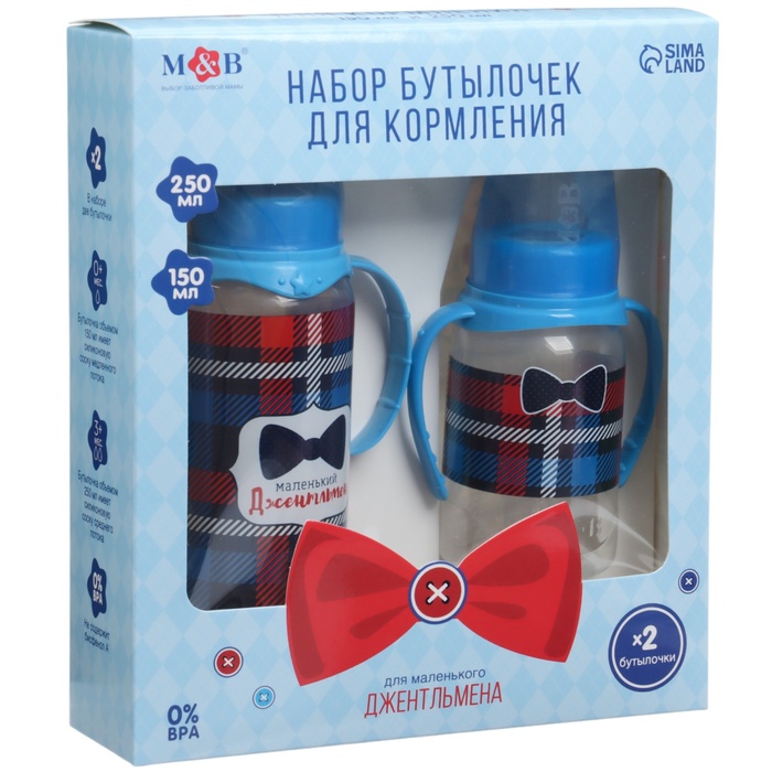 Подарочный детский набор M&B «Джентльмен»: бутылочки для кормления 150 и 250 мл, прямые, от 0 мес., голубой — Характеристики