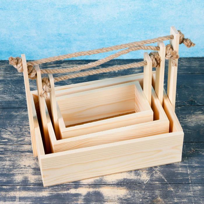 Подарочный ящик «Классик», деревянный, ручка - верёвка, набор 3 шт. — Характеристики