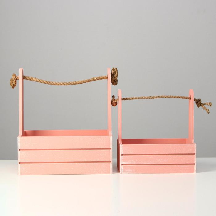 Подарочный ящик «Прованс», деревянный, ручка - канат, розовый, набор 2 шт. — Характеристики