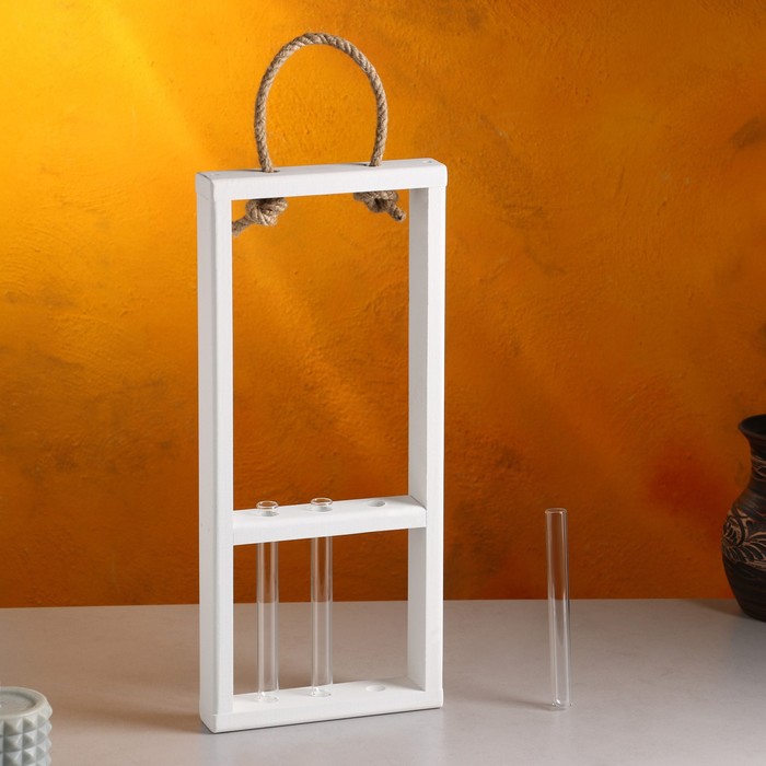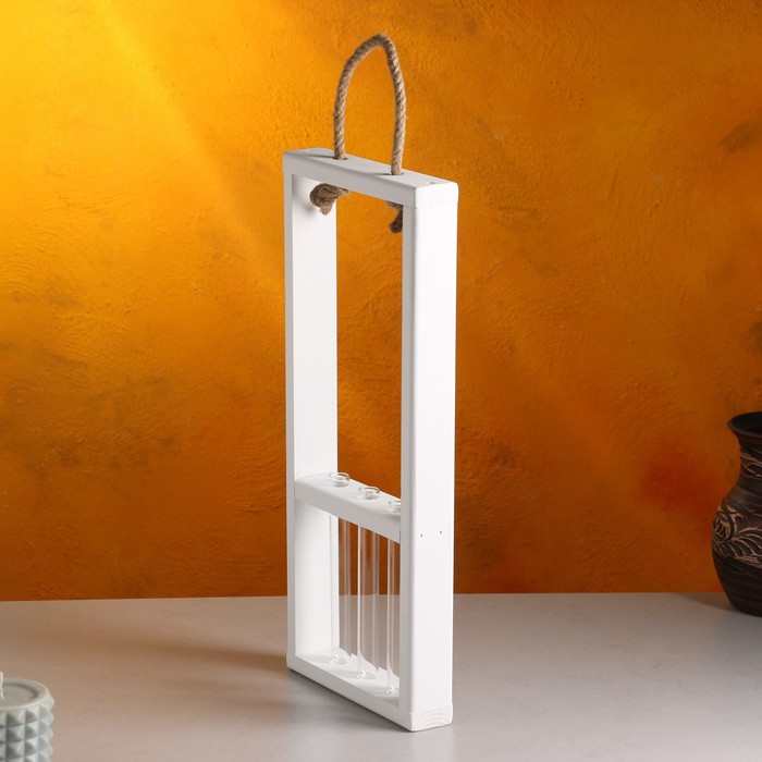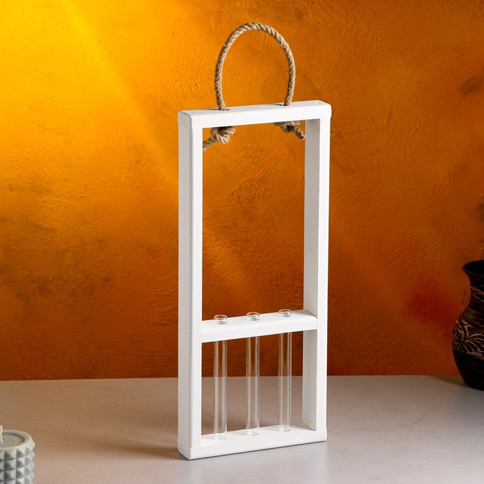 Подарочный ящик «Рамка», 18×5×40 см, 3 колбы, деревянный, ручка - верёвка, белый — Характеристики