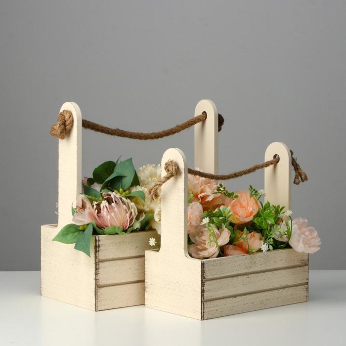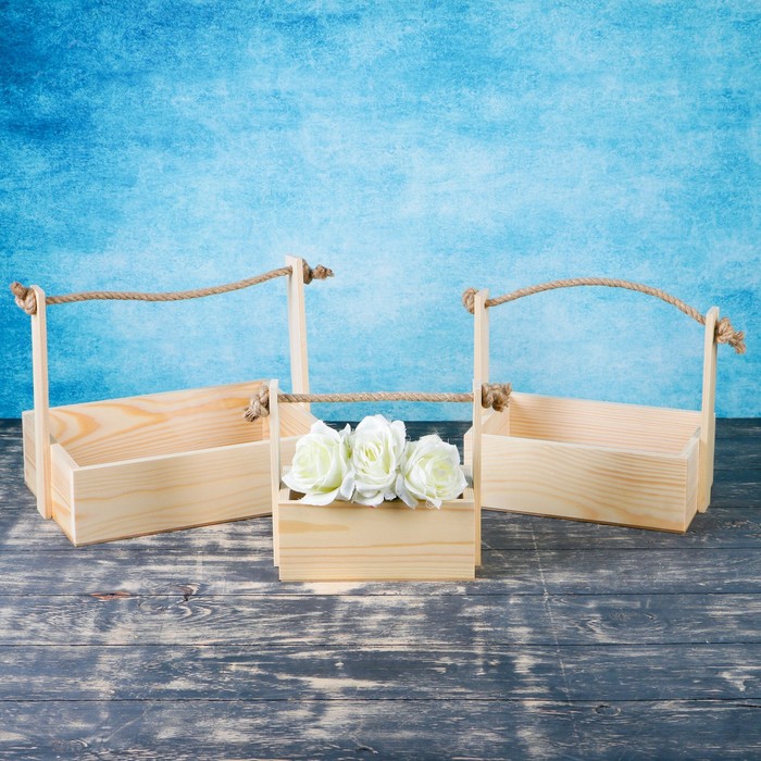 Подарочный ящик «Состаренный», деревянный, ручка - верёвка, набор 3 шт. — Характеристики