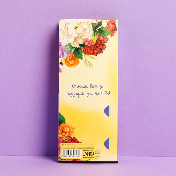 Открытка с местом под шоколадку, станет прекрасным подарком к празднику. Яркий дизайн, удобный формат и приятные эмоции обеспечены своему получателю.