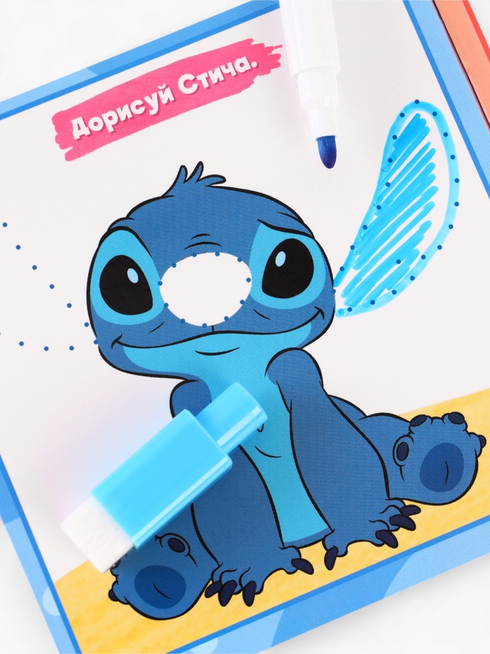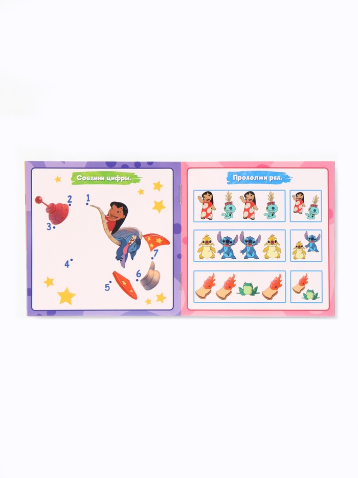 - Книга с яркими иллюстрациями и мягкой обложкой погружает ребёнка в захватывающие истории о приключениях Стича.