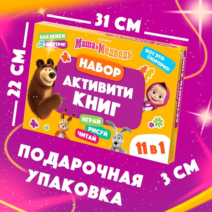Набор «11 активити-книг с Машей и Медведем» станет отличным подарком для детей от 7 лет. Этот комплект включает книжки для раскрашивания, аппликации, задания с наклейками и многое другое, что сделает процесс обучения не только полезным, но и увлекательным. Красочная картонная коробка добавляет набору презентабельности, что особенно важно, если вы ищете подарок.