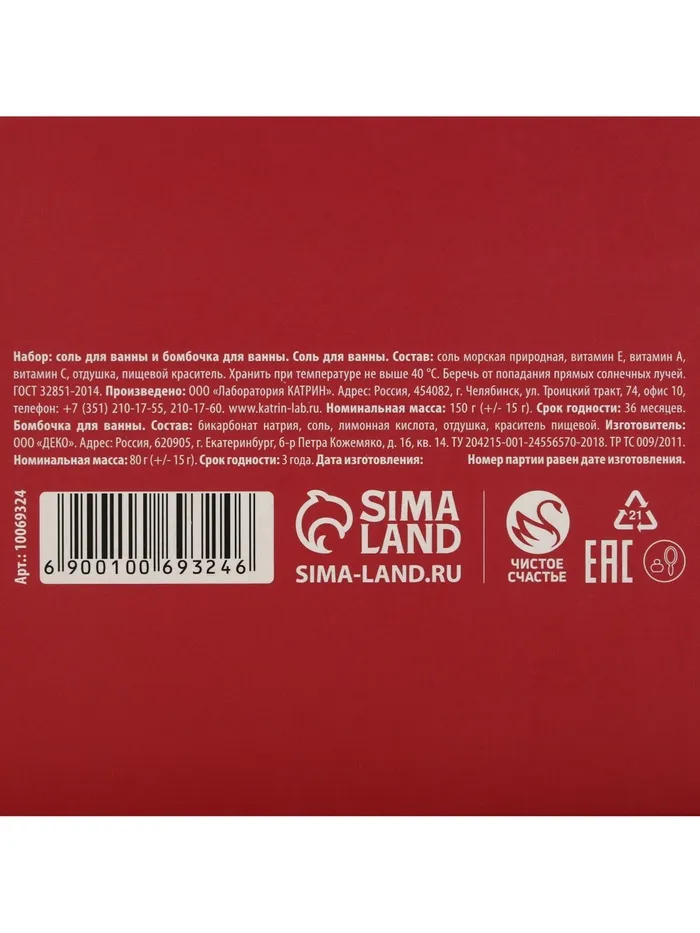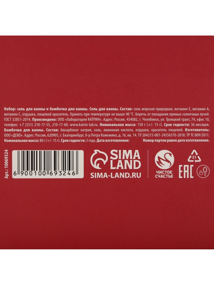 Составляющие набора: Соль для ванны