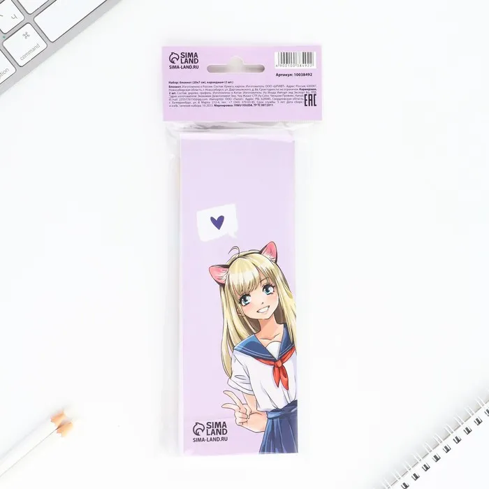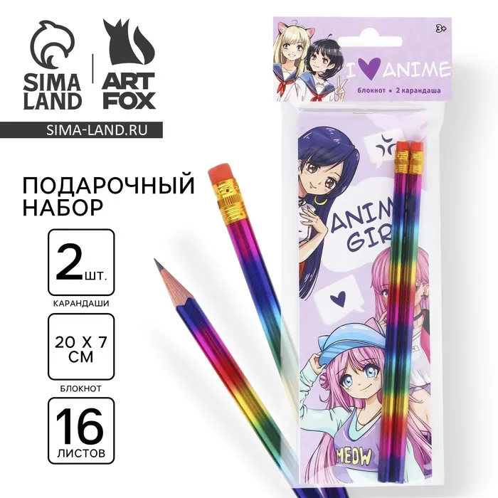 Подарочный набор, 2 карандаша и блокнот Anime girl — Характеристики