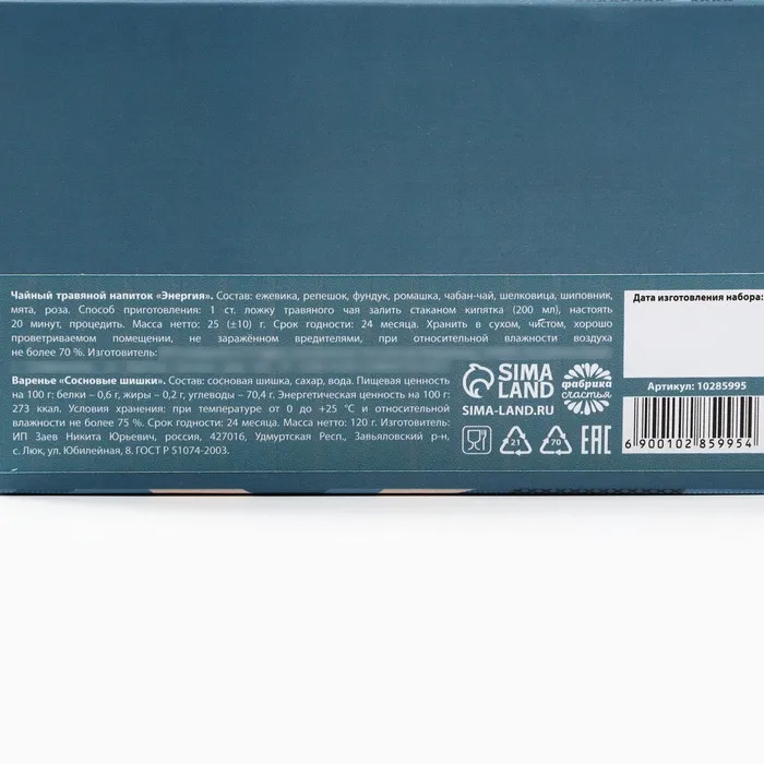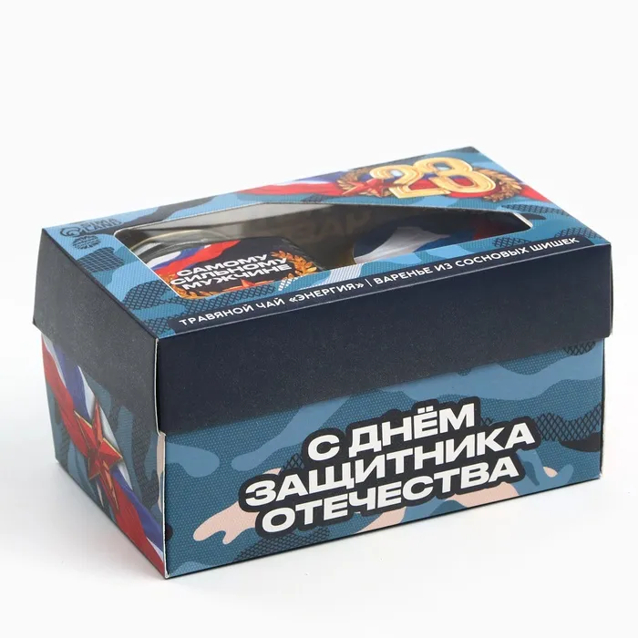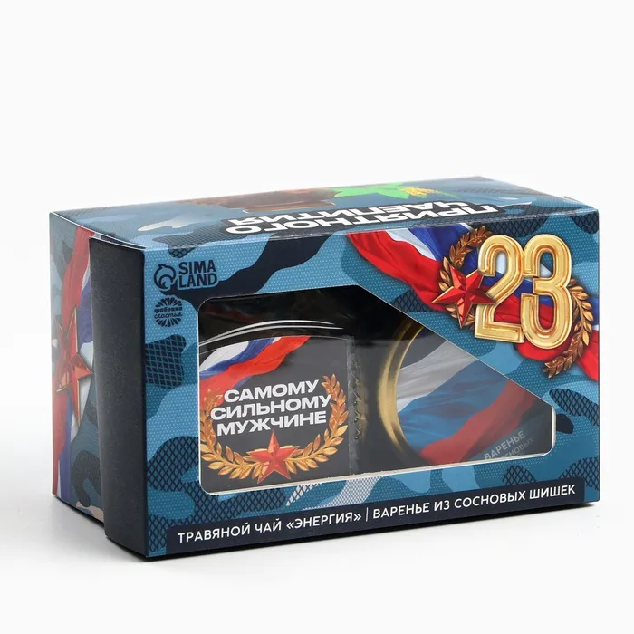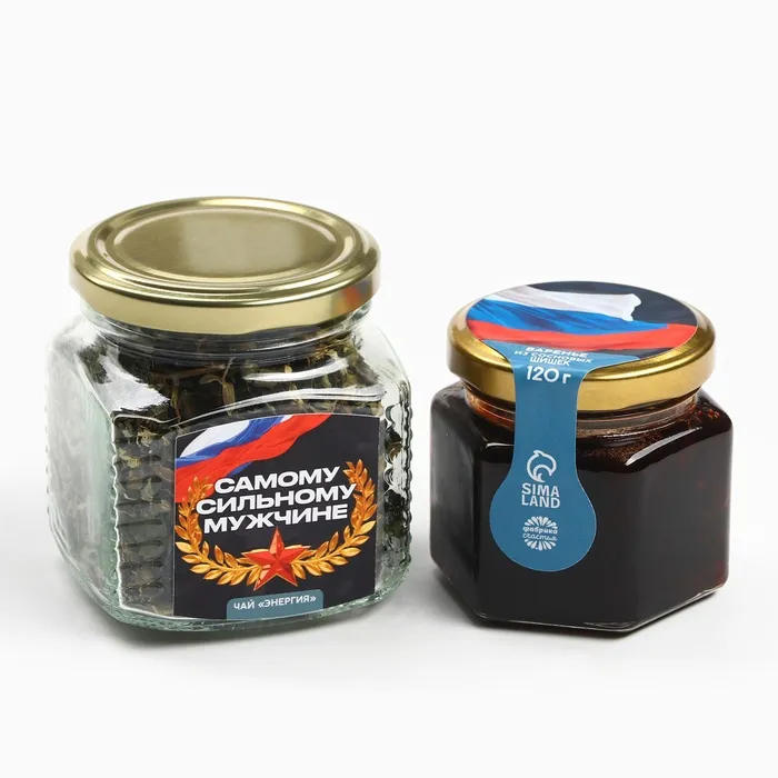 Подарочный набор «23 февраля»: чай травяной 25 г., варенье с сосновыми шишками 120 г. — Характеристики