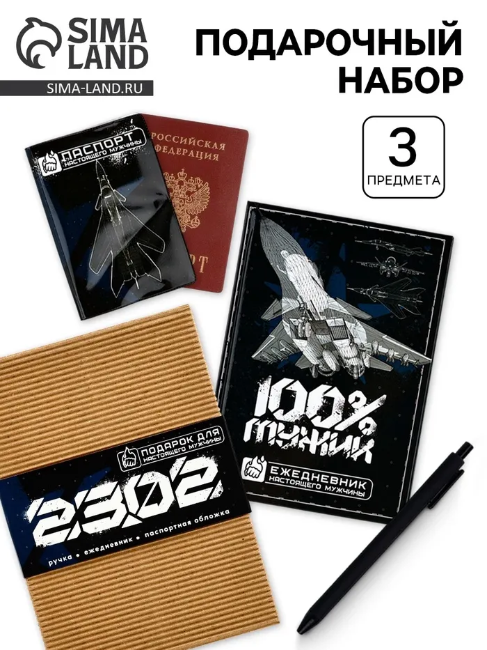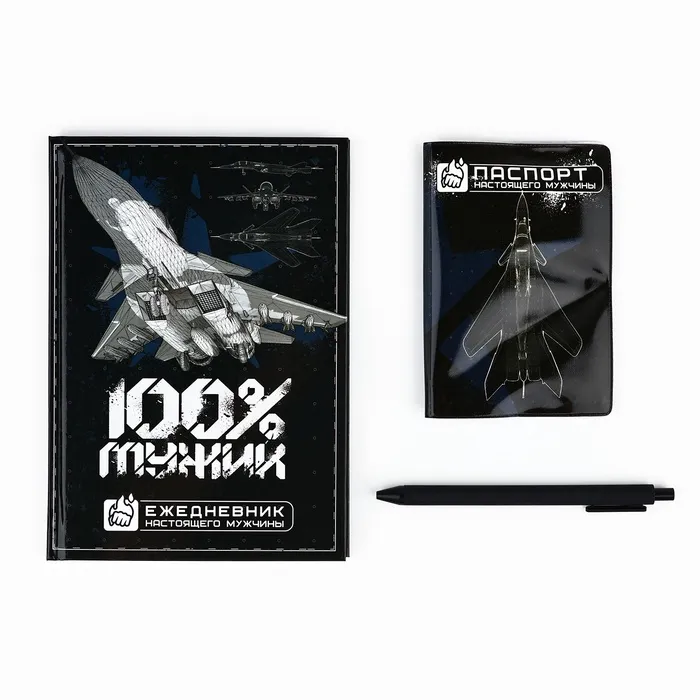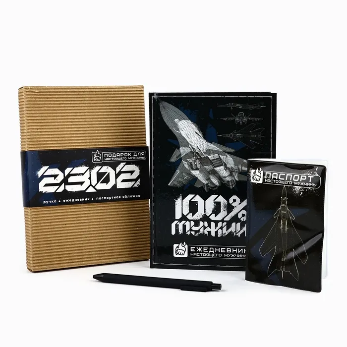 Подарочный набор «23 февраля»: ежедневник А5, 80 листов, паспортная обложка ПВХ и ручка пластик — Характеристики