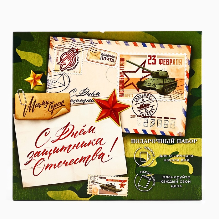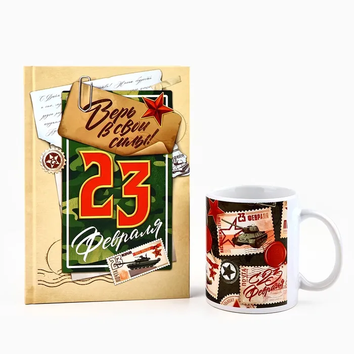Подарочный набор «23 февраля», ежедневник А5, 80 листов в твердой обложке и кружка — Характеристики