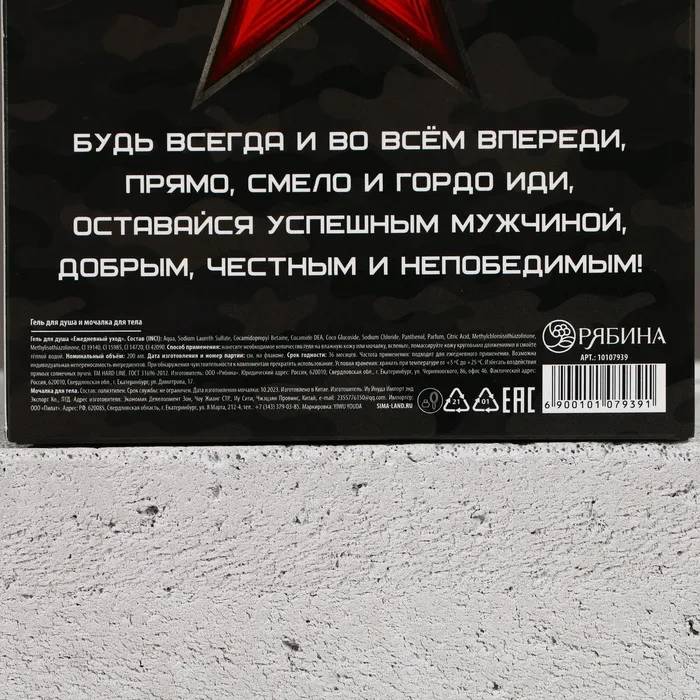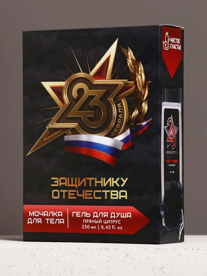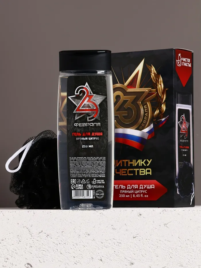Подарочный набор «23 Февраля»: гель для душа 200 мл и мочалка для тела, HARD LINE — Характеристики