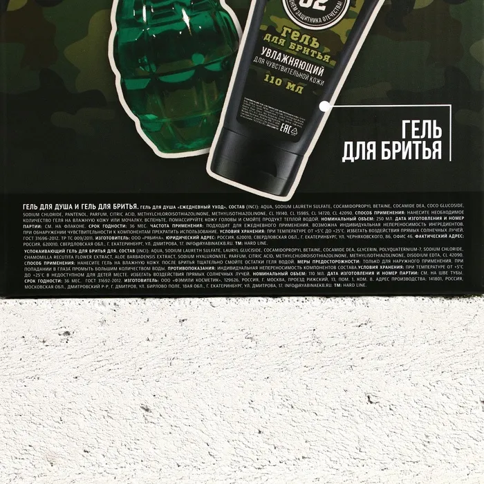 Подарочный набор «23 Февраля»: гель для душа 250 мл и гель для бритья 110 мл, HARD LINE — Характеристики