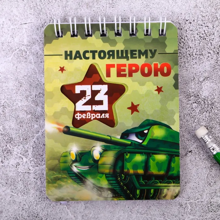 Подарочный набор «23 февраля», карандаши 2 шт., ластики 2 шт., блокнот — Характеристики