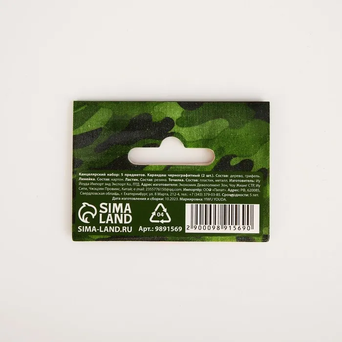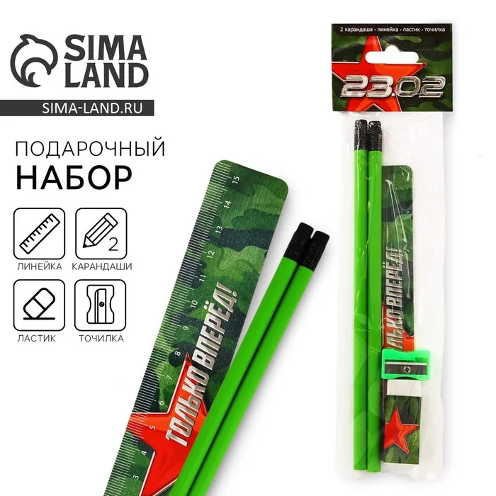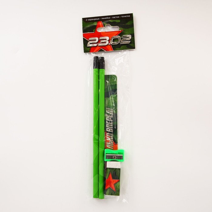 Подарочный набор «23 февраля», линейка, карандаши, точилка и ластик — Характеристики