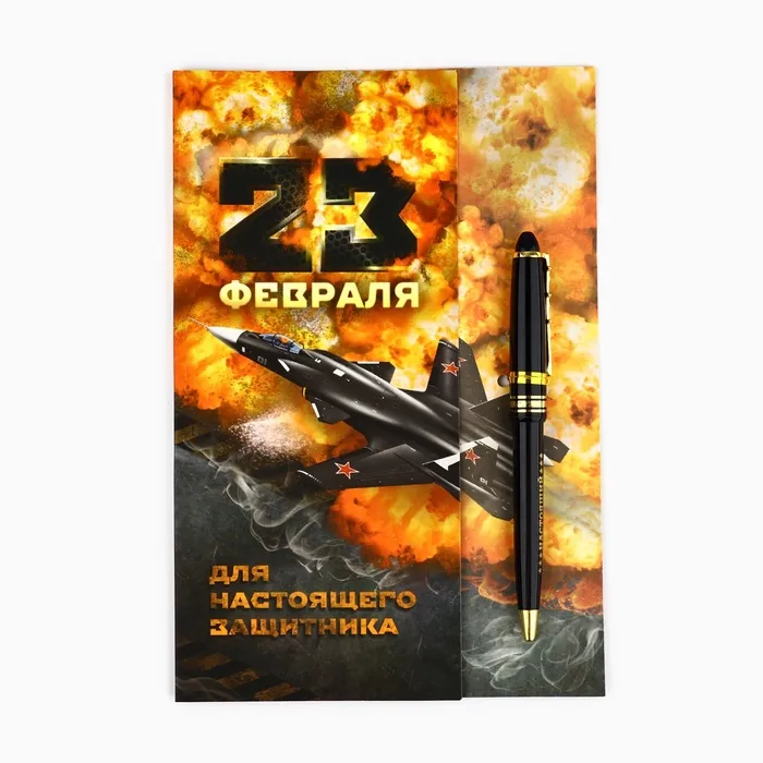 Подарочный набор «23 февраля», ручка пластик с фигурным клипом и стикеры — Характеристики