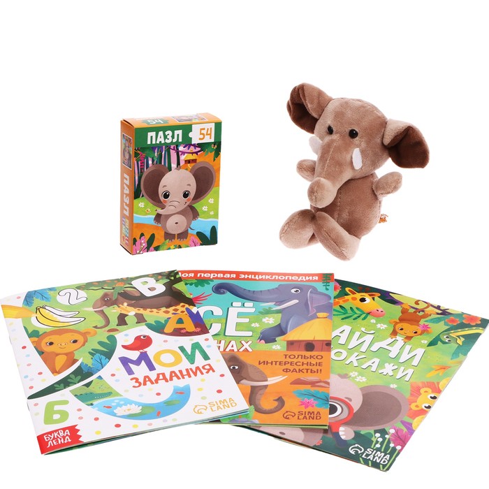 Подарочный набор 3в1 «Слонёнок Топа», 3 книги, пазл, мягкая игрушка — Характеристики