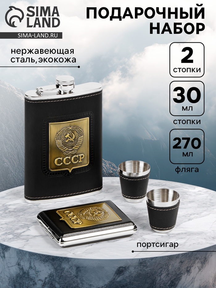 Подарочный набор 4 «СССР»: фляжка 270 мл, 2 стопки, портсигар — Характеристики