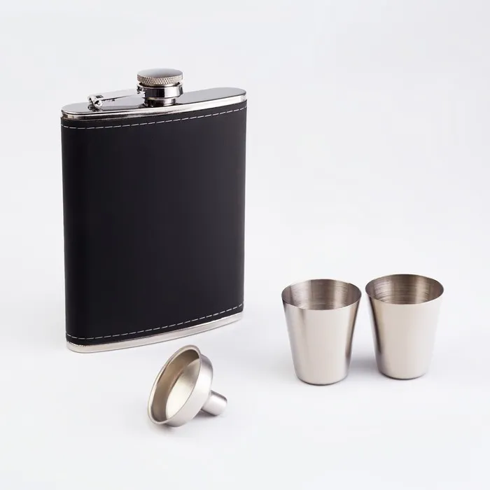 Подарите стиль и практичность! Компактный набор для напитков включает флягу и две стопки, идеально подходящие для путешествий и пикников.