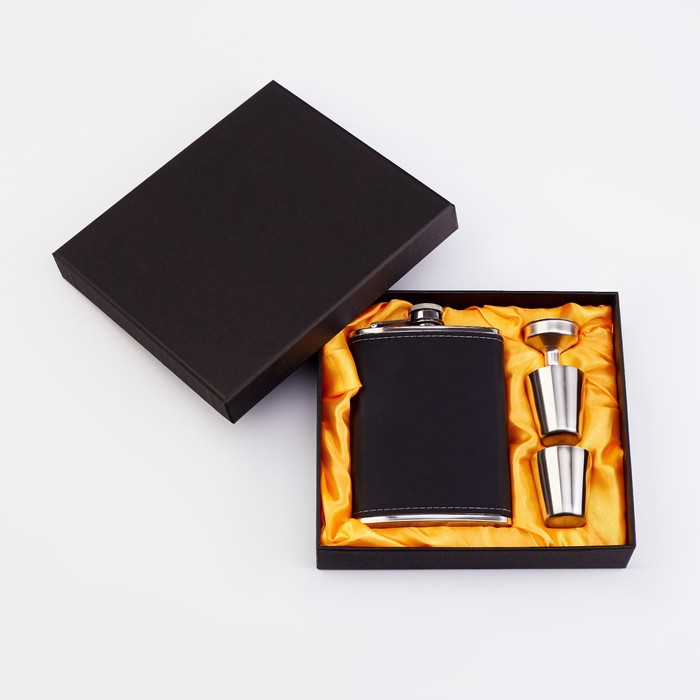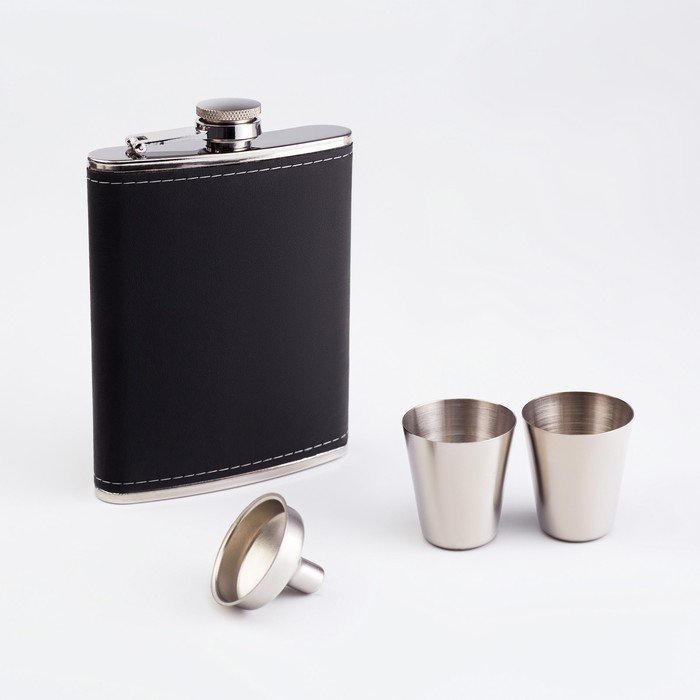Подарочный набор 4 в 1, фляжка 240 мл, 2 стопки, воронка, нержавеющая сталь, экокожа, чёрный — Характеристики