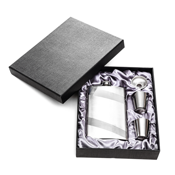 Когда речь идёт о том, что подарить сильному, брутальному и мужественному мужчине на какой либо повод, то голова идёт кругом! Один из самых интересных, памятных а так же практичных вариантов подарка-это набор с фляжкой! В наборе есть фляжка из нержавеющей стали, две стопки и воронка,что очень удобно и практично! Мужчины точно оценят!
