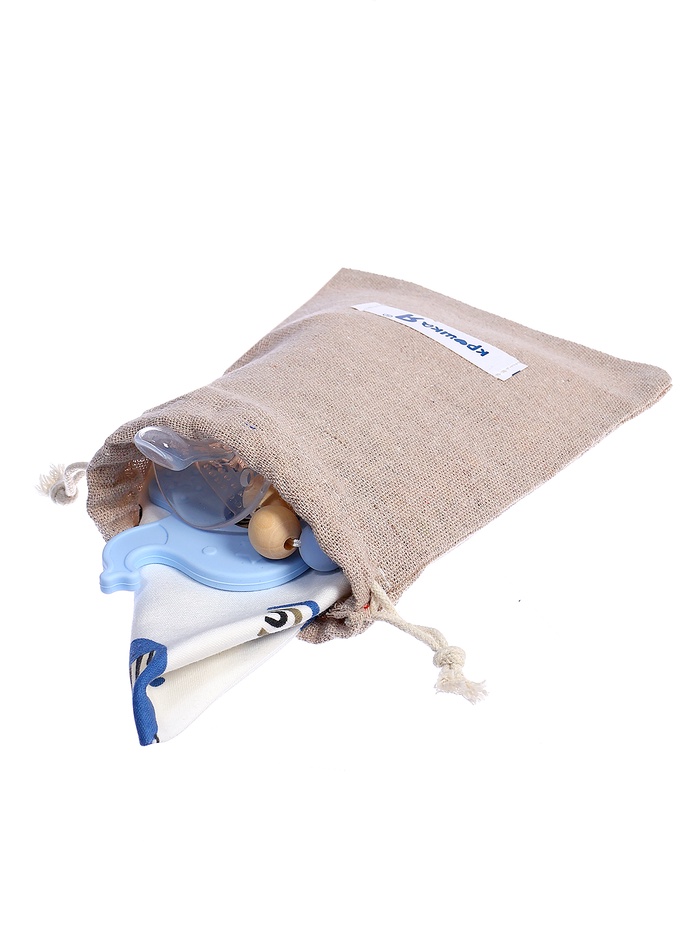 - Подарочная упаковка. Красивый мешочек делает набор готовым подарком для новорождённого. Практичное решение для родителей, которые ценят удобство.