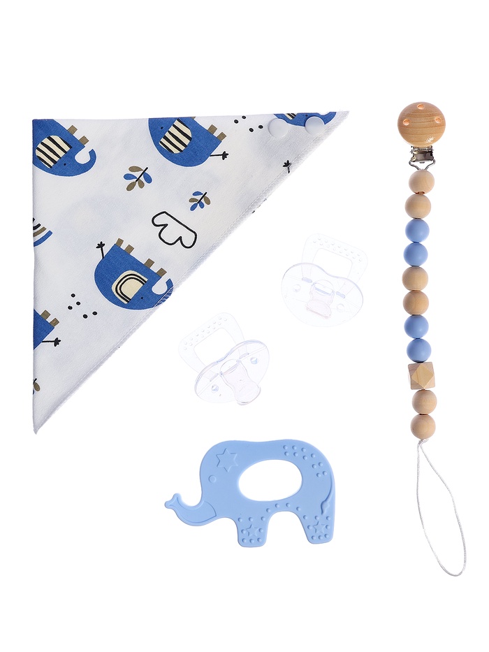 - Всё необходимое в одном комплекте. В набор входят текстильные и силиконовые аксессуары, которые пригодятся с первых дней жизни. Каждая деталь создана для комфорта малыша.