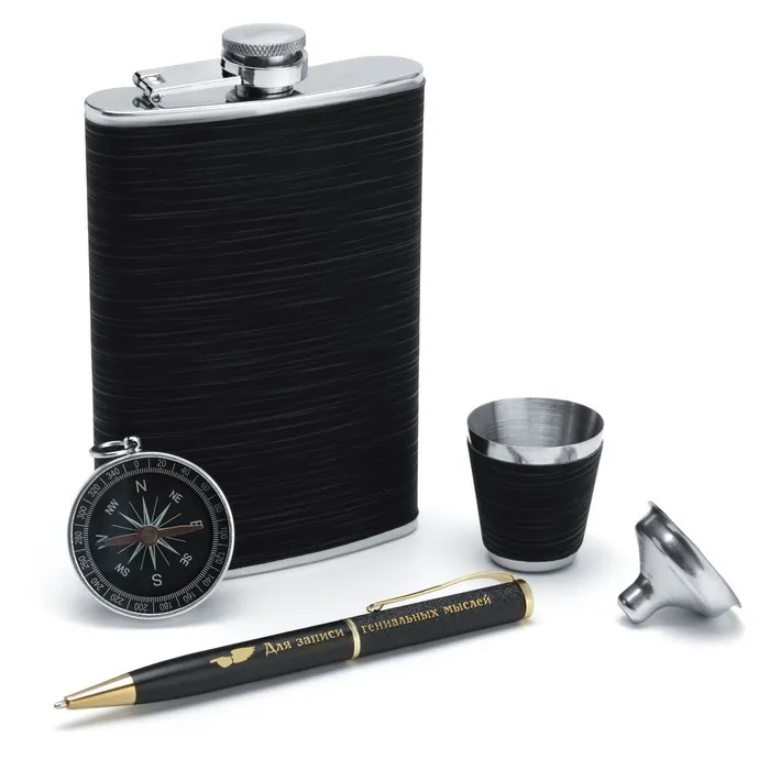 Вы стремитесь учесть вкусы близких или друзей при выборе подарка? А может ваша задача предоставить уникальный товар для своих клиентов? Для ярких индивидуалистов, ретроградов, поклонников лаконичных и стильных вещей или может быть любителей крепких горячительных напитков, разработан подарочный набор 5 в 1: фляжка 270 мл, брелок с компасом, воронка, рюмка, 18 х 23 в оригинальном дизайне по отличной оптовой цене!