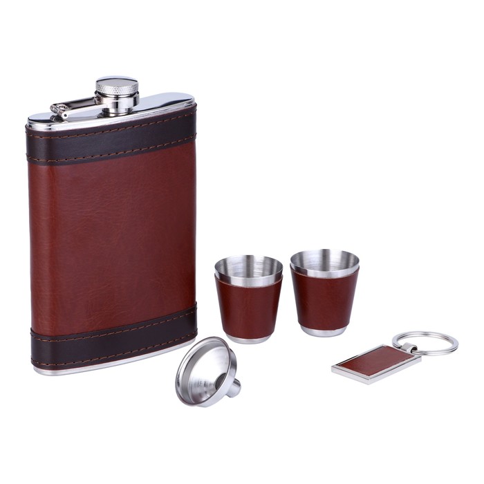 Подарочный набор 5 в 1 "Горький шоколад": фляжка 270 мл, 2 рюмки, воронка, брелок 5 х 23 х 17 см 11 — Характеристики