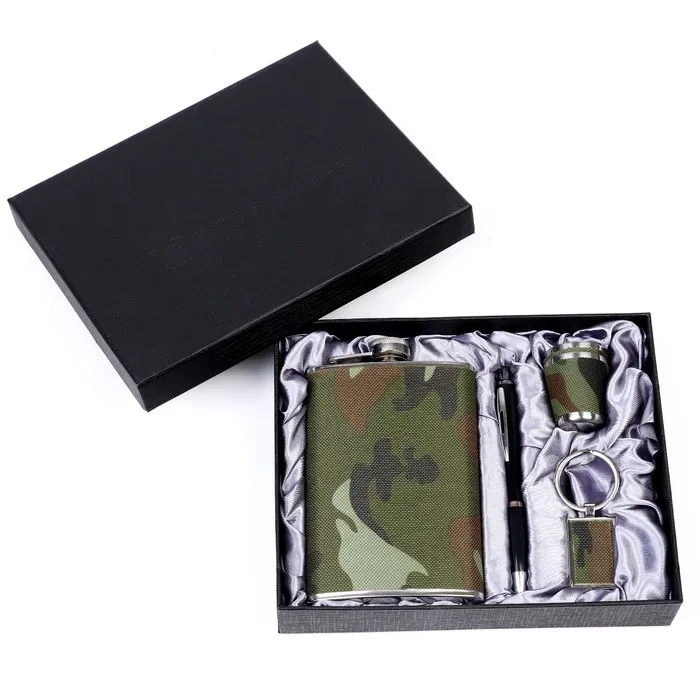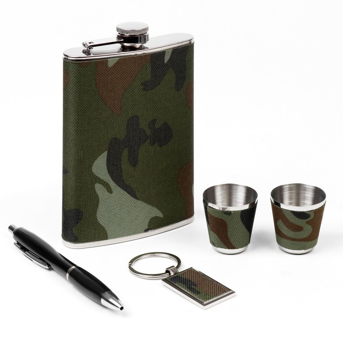 Подарочный набор 5 в 1 "Хаки": фляжка 270 мл, ручка, брелок, 2 стопки — Характеристики
