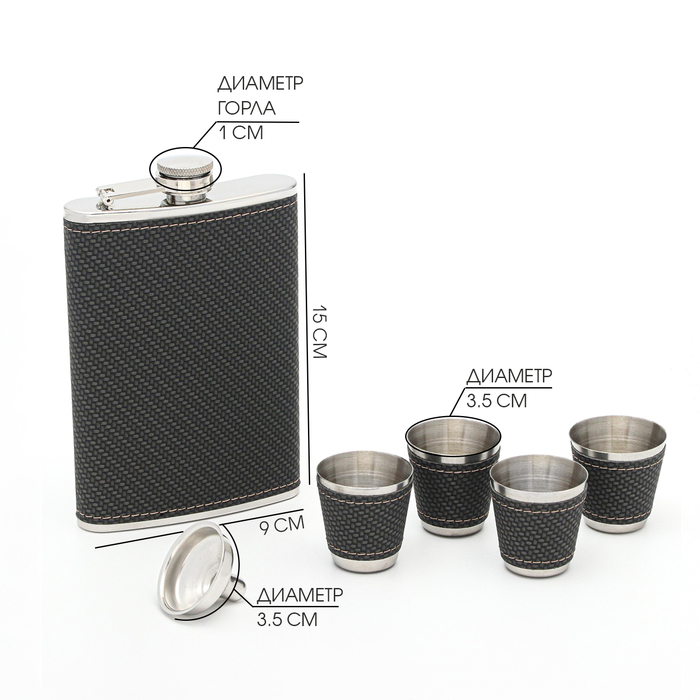 Подарочный набор 6 в 1: фляжка 270 мл, 4 стопки по 40 мл, воронка — Характеристики