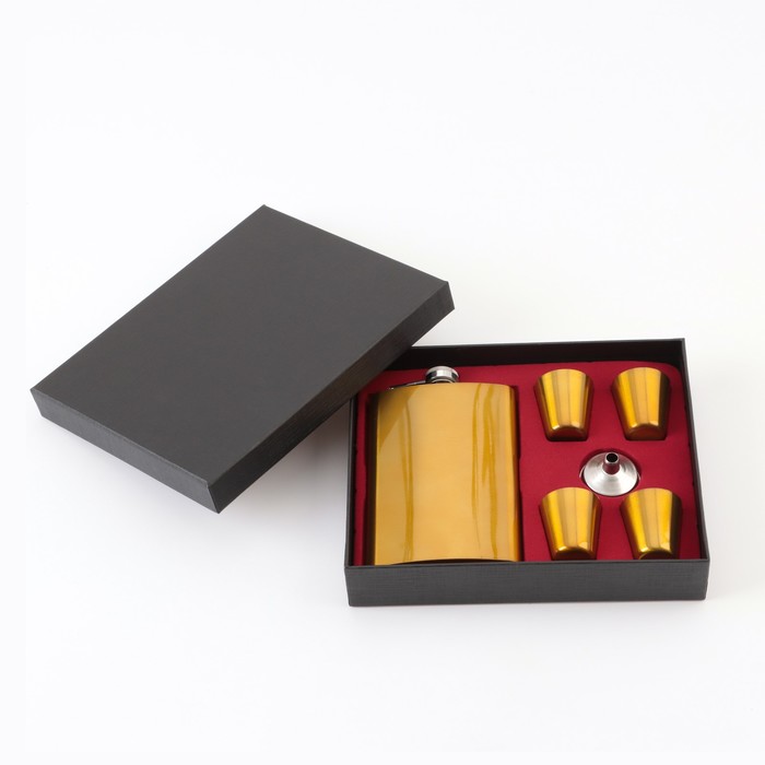 Подарочный набор 6 в 1: фляжка 270 мл, воронка, 4 рюмки, 18×24 см, нержавеющая сталь, золотистый — Характеристики