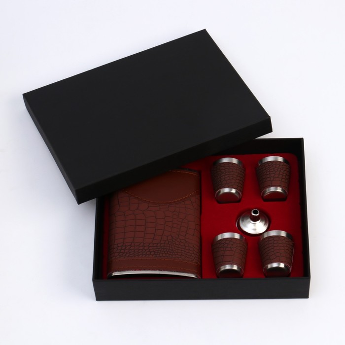 Отличным дополнением в наборе с фляжкой являются 4 рюмки и воронка для удобного переливания жидкостей, упакованы в подарочную коробку. Подарочный набор подойдёт в качестве подарка папе, брату, другу, брату, дедушке на 23 февраля, день рождения или любой другой праздник.