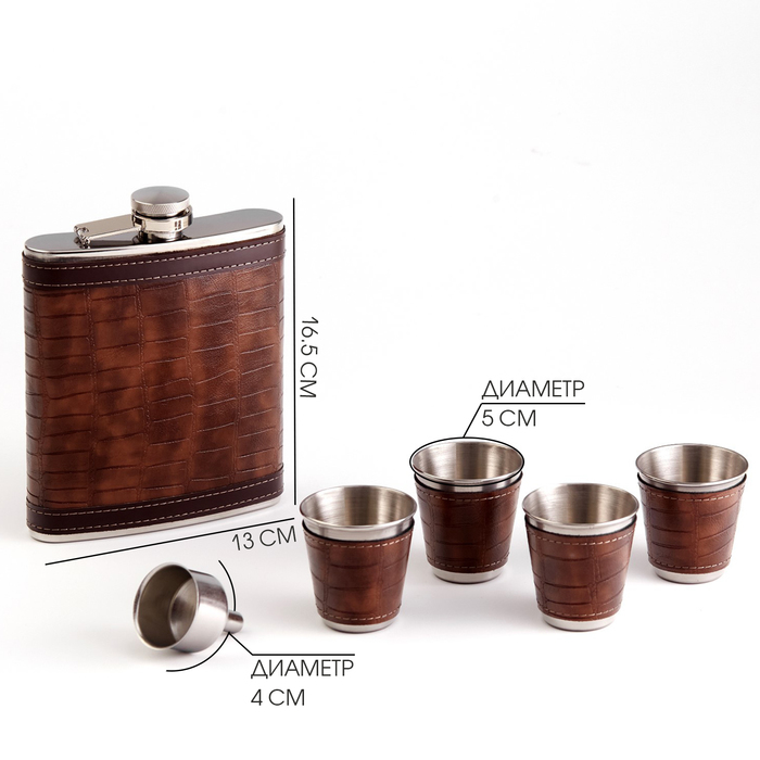 Подарочный набор 6 в 1: фляжка 540 мл, 4 стопки по 75 мл, воронка — Характеристики